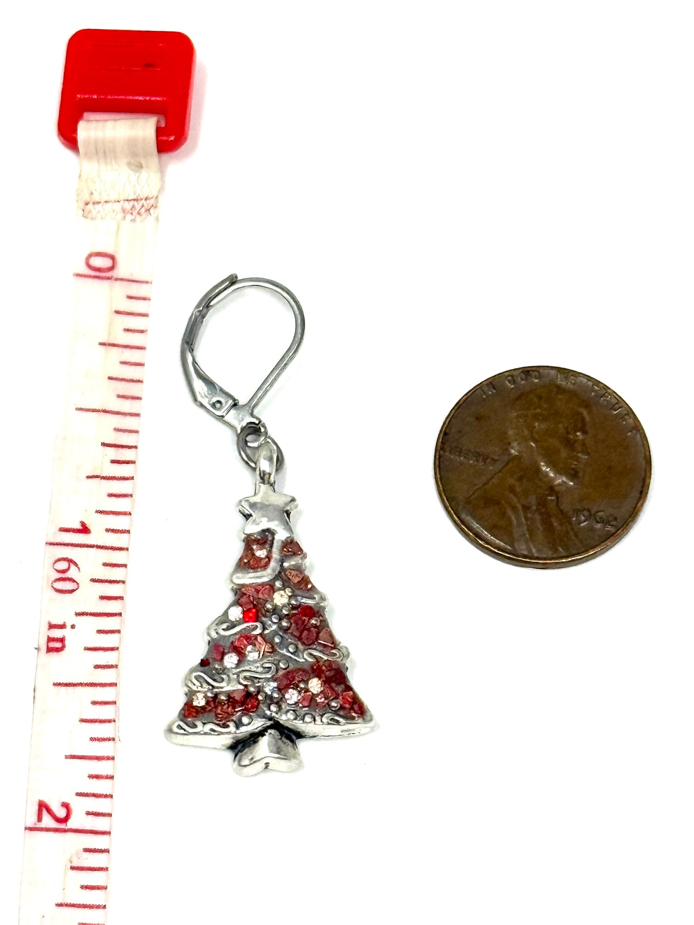 - Design: Antique oxidized Christmas tree charms with festive red silver chips and genuine Swarovski crystals