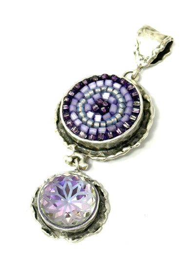 Handmade Purple Mosaic Seed Bead Pendant #8236D