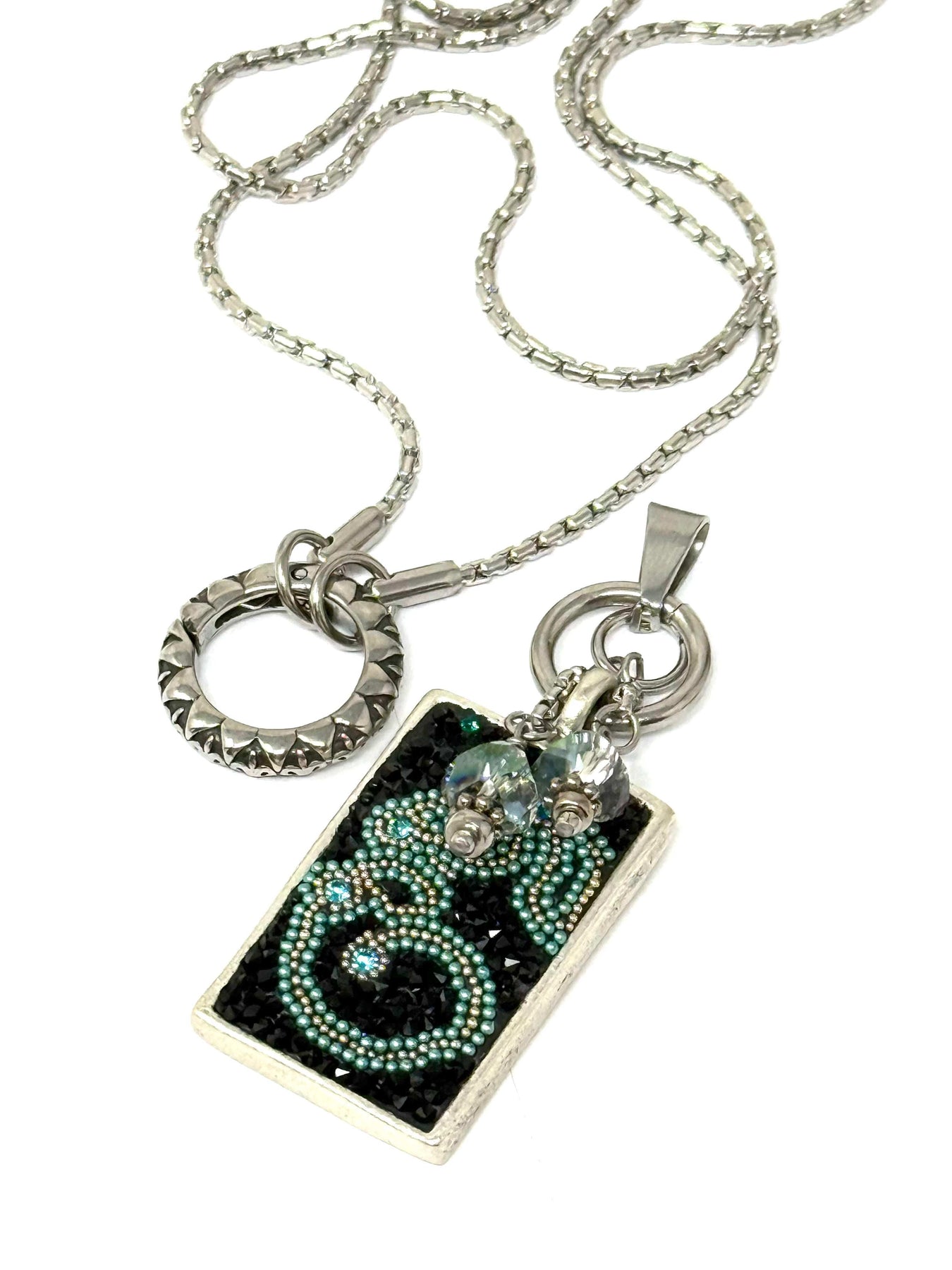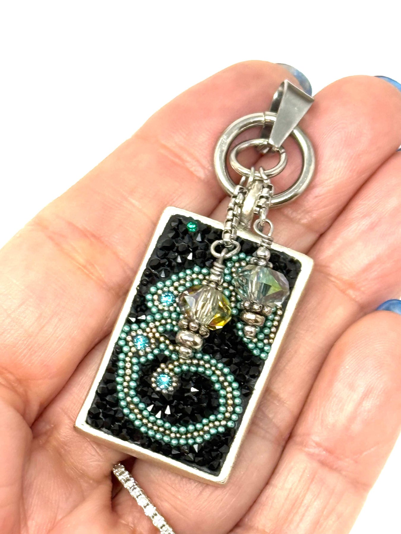 Crystal and Tiny Pearl Mosaic Swirl Interchangeable Bead Pendant
