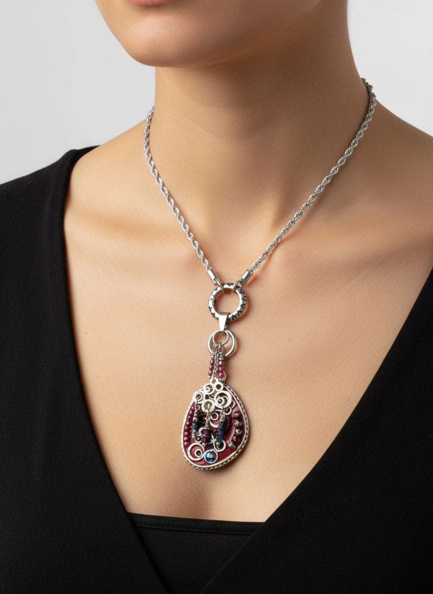 Boho Pendant Burgundy - Handmade Necklace #5968D