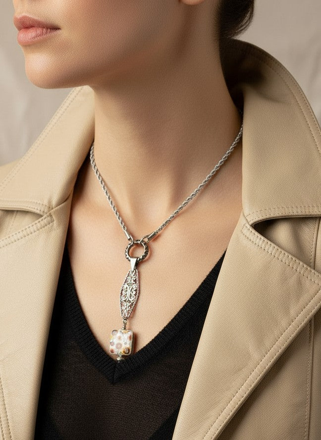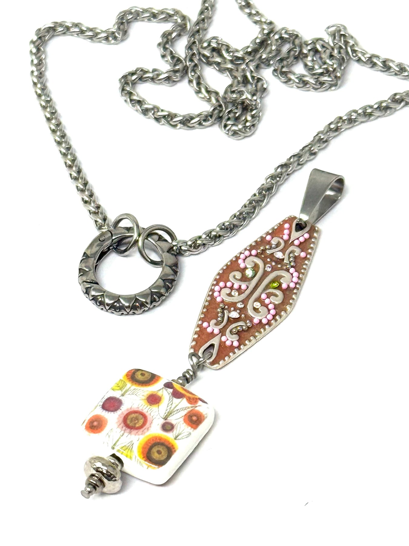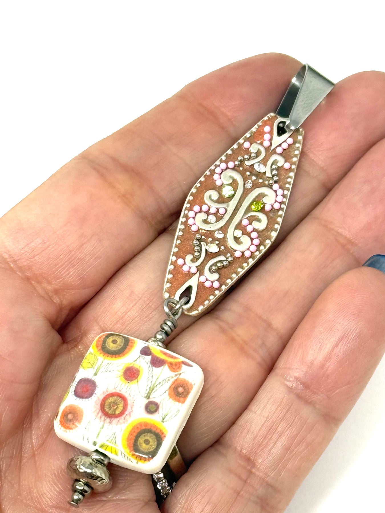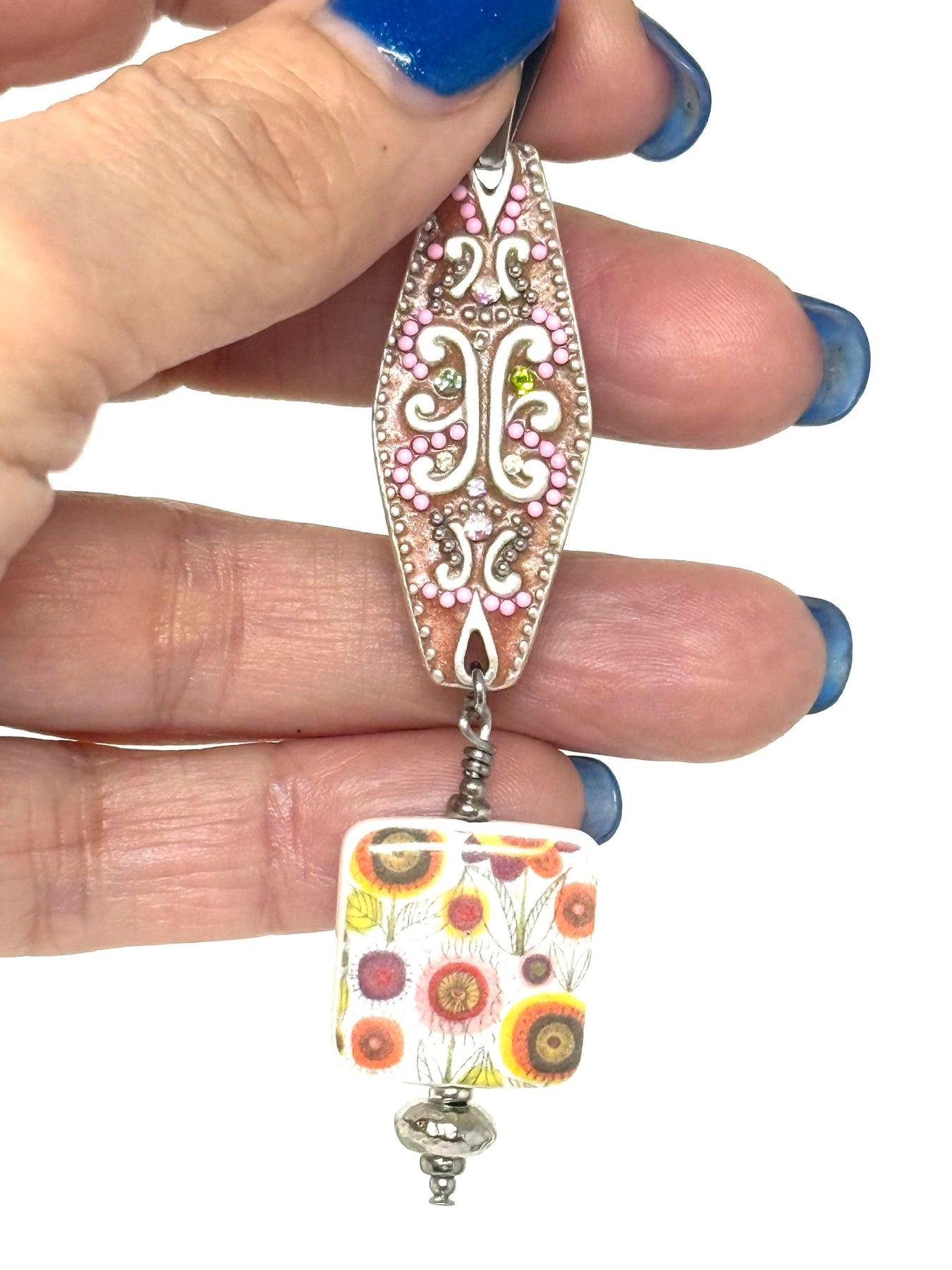 Handmade Porcelain Mosaic Floral Beaded Pendant