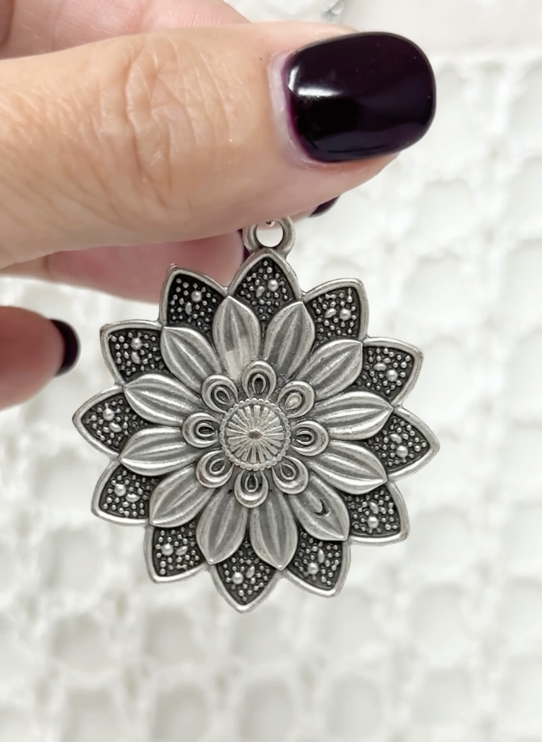 Focal Design: Hand-carved moon face on one side, intricate flower mandala pattern on reverse - two looks in one pendant