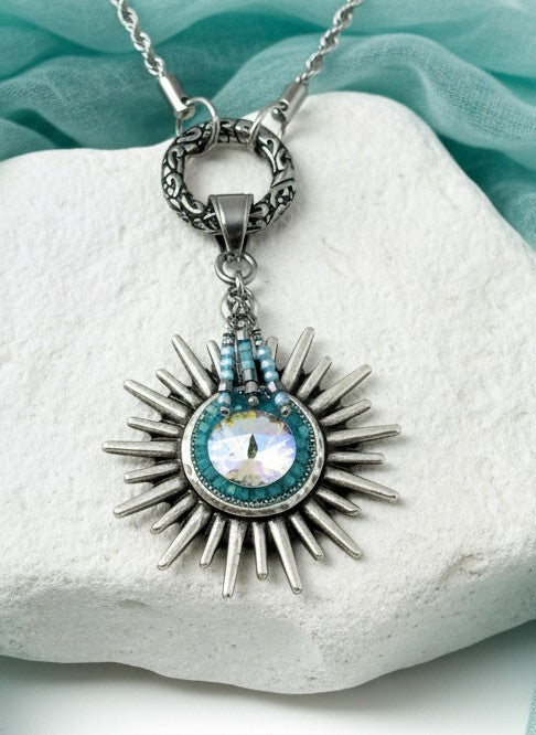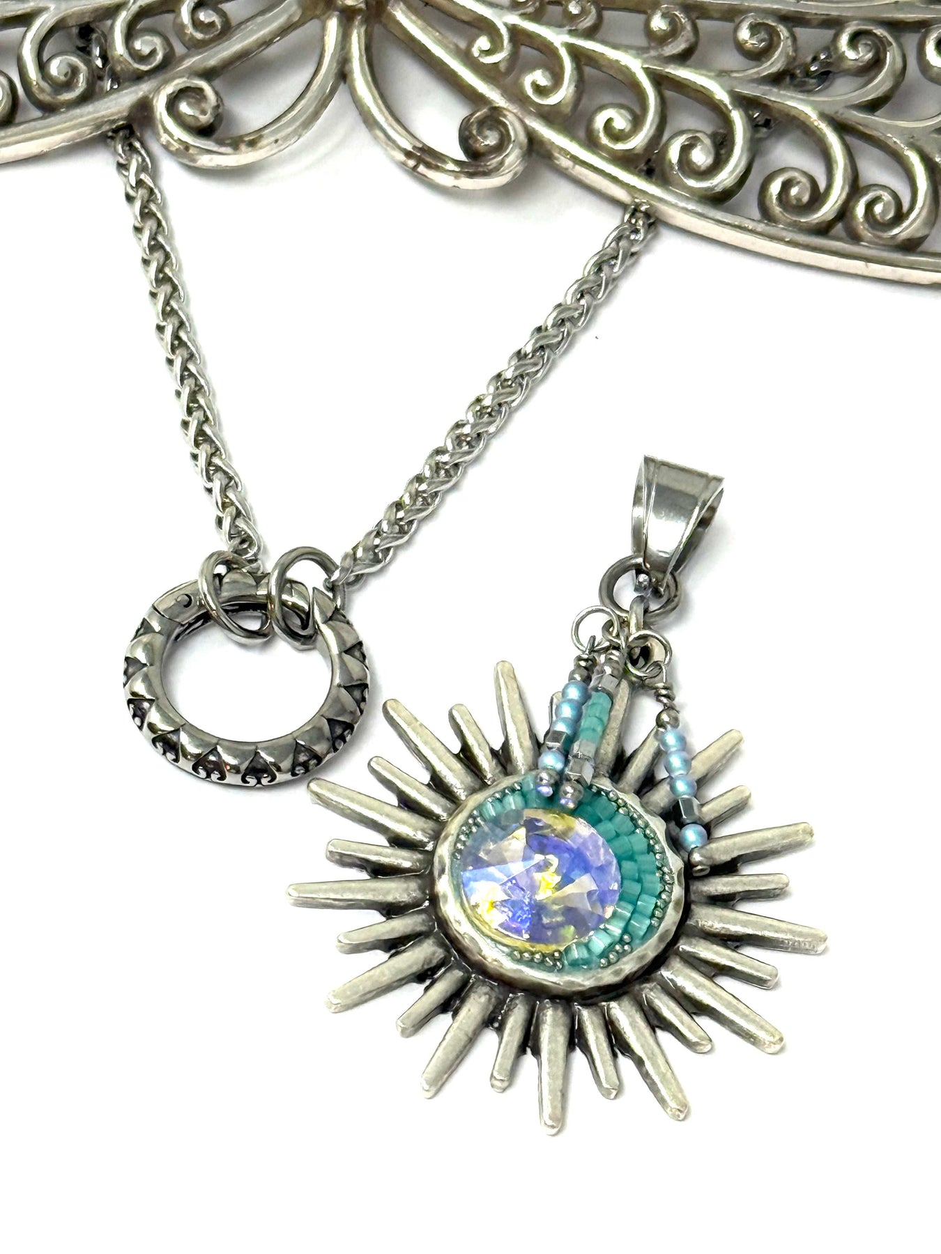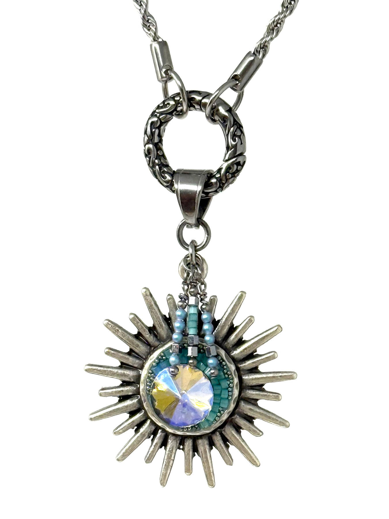 Sun Pendant Necklace Crystal Seed Bead - Handmade Jewelry #8264D