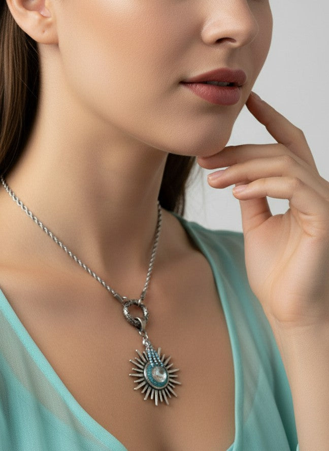 "This crystal sun pendant is pure sunshine! The multi-color crystals sparkle so beautifully and the sun design is perfectly formed. It's my go-to pendant when I want to feel happy and energized. The colors are so vibrant and cheerful—it literally brightens my day every time I wear it!"