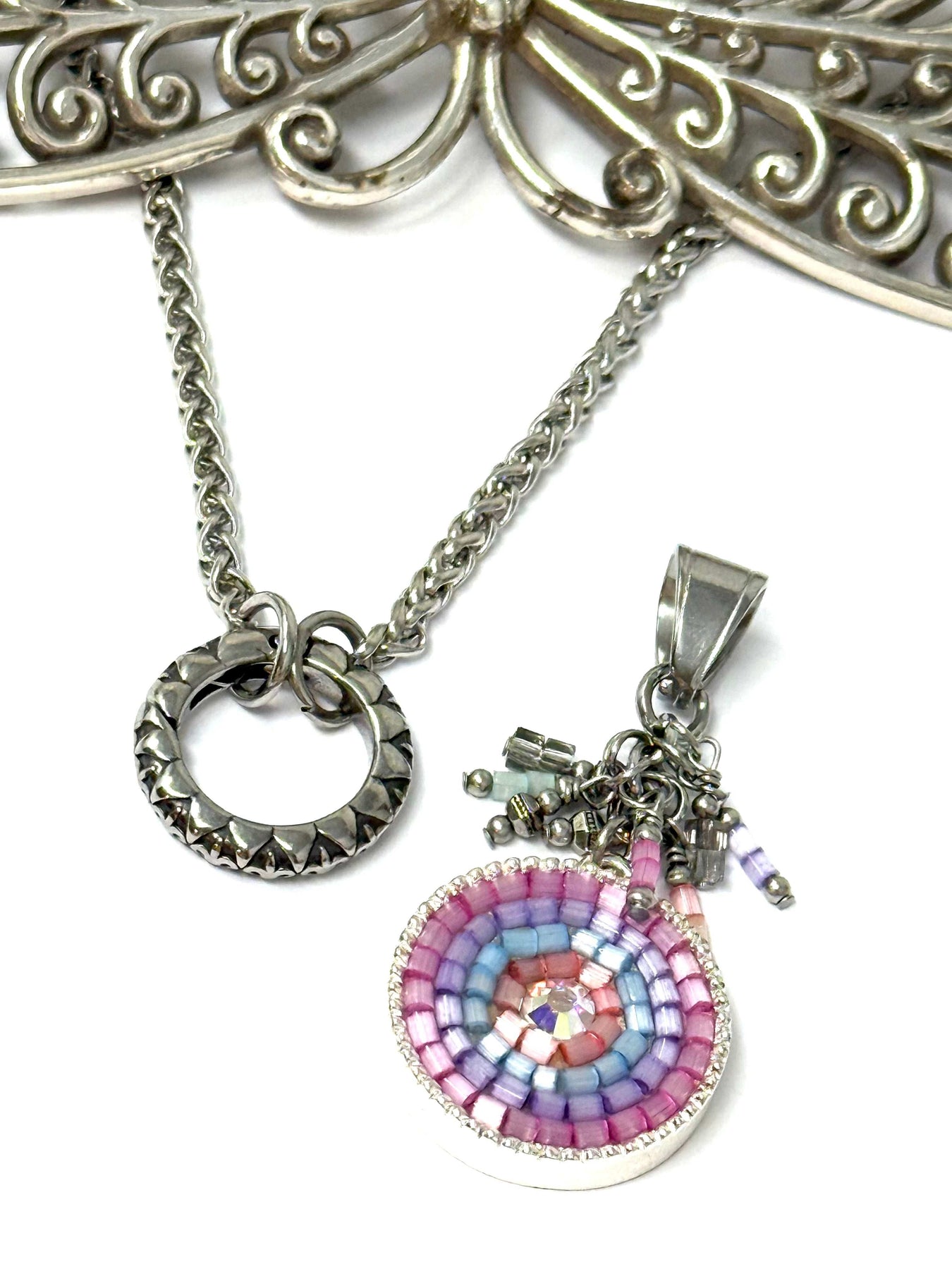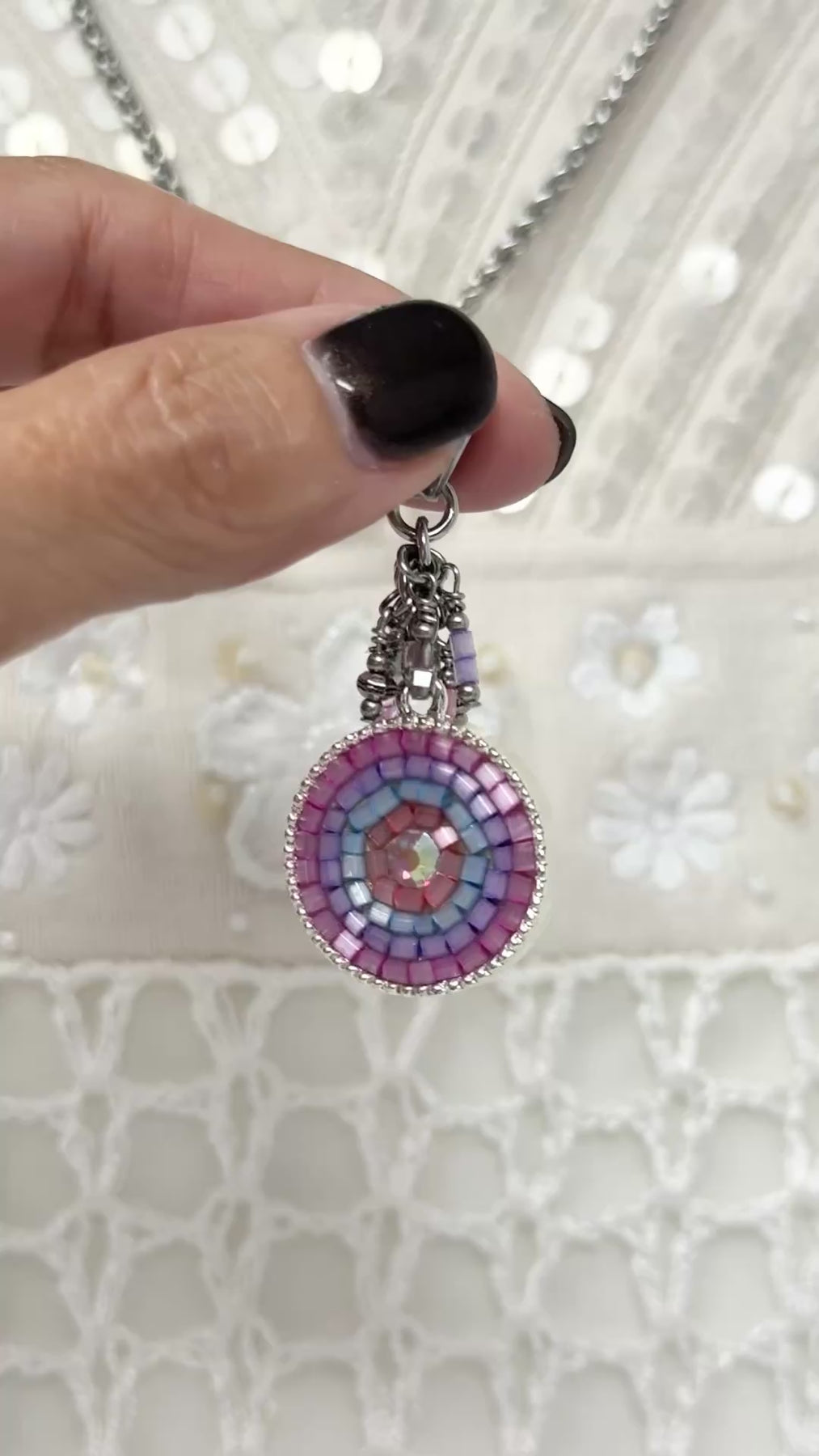 Seed Bead Pendant Pastel Glass Shimmer - Handmade Jewelry #8231