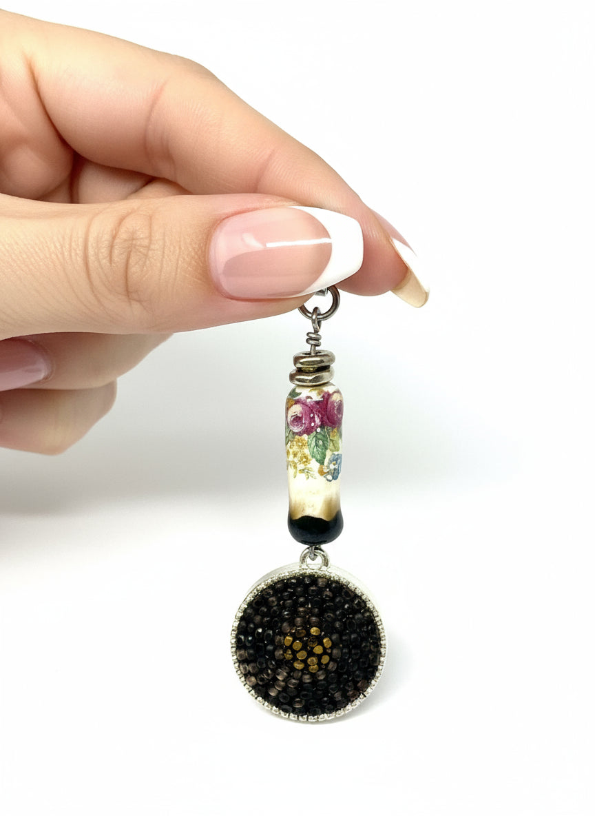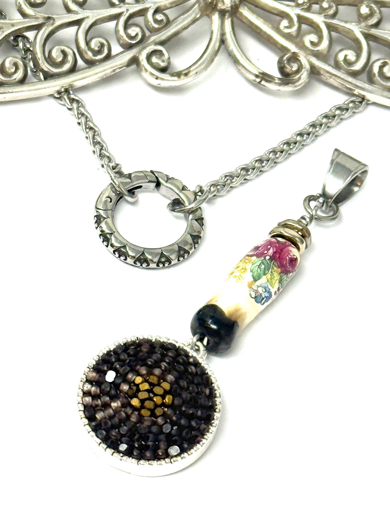 Focal Gemstone: Features a Victorian floral design with genuine Porcelain Focal Bead and Mosaic Beadwork.